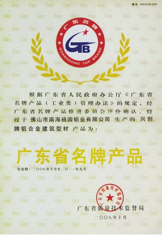 廣東省著名商標證書