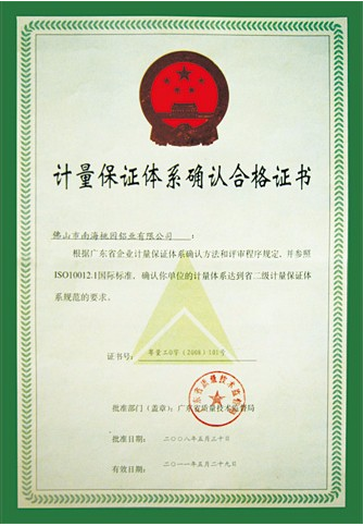 計量保證體系確認合格證書